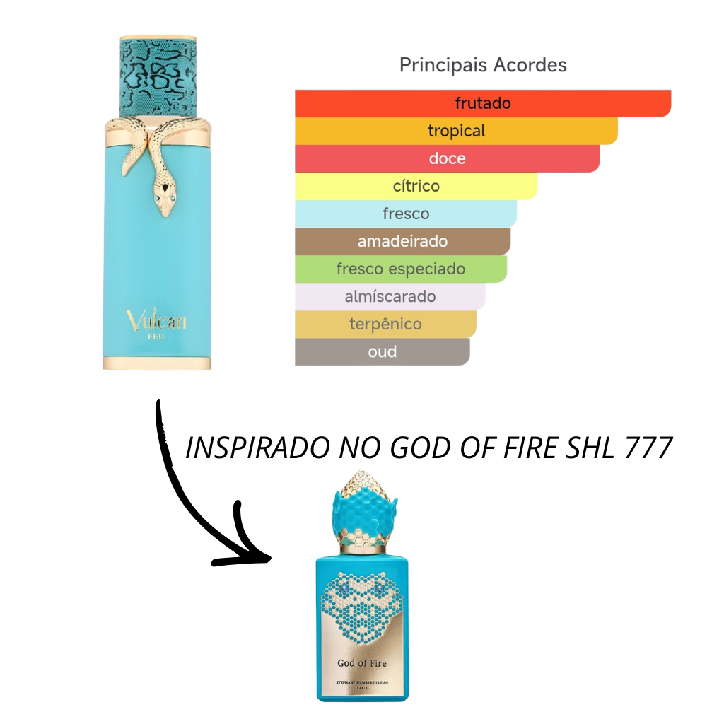 Vulcan Feu de French Avenue é um perfume Floral Compartilhável. Esta é uma nova fragrância. Vulcan Feu foi lançado em 2025. As notas de topo são: Manga, Limão, Gengibre e Ruibarbo. As notas de coração são: Pimenta Rosa, Jasmim, Violeta e Pralinê. As notas de fundo são: Fava Tonka, Cedro, Âmbar Cinzento e Musgo.